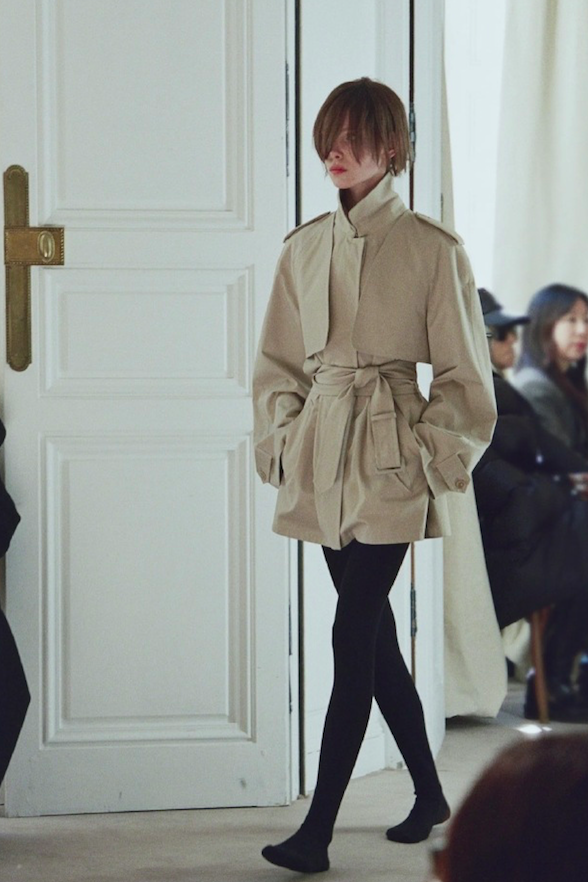 漏斗领作为风衣本身的一种设计元素,今年的存在感可以说是相当强。Saint Laurent将其演绎成锋利的雕塑线条,刚毅而挑衅;The Row用雕塑版的领口设计涨声操盘,彰显利落姿态。