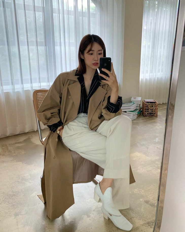 时髦精们都钟爱长款风衣,走在路上自带风,气场一米八。但是长度太长(脚踝处、盖过脚面)就很容易压个子,很容易穿出偷穿大人的衣服模样。对于大多是为普通身高的我们,最不挑人的是长度到膝盖左右的中长款,无论什么身高都能轻松驾驭。