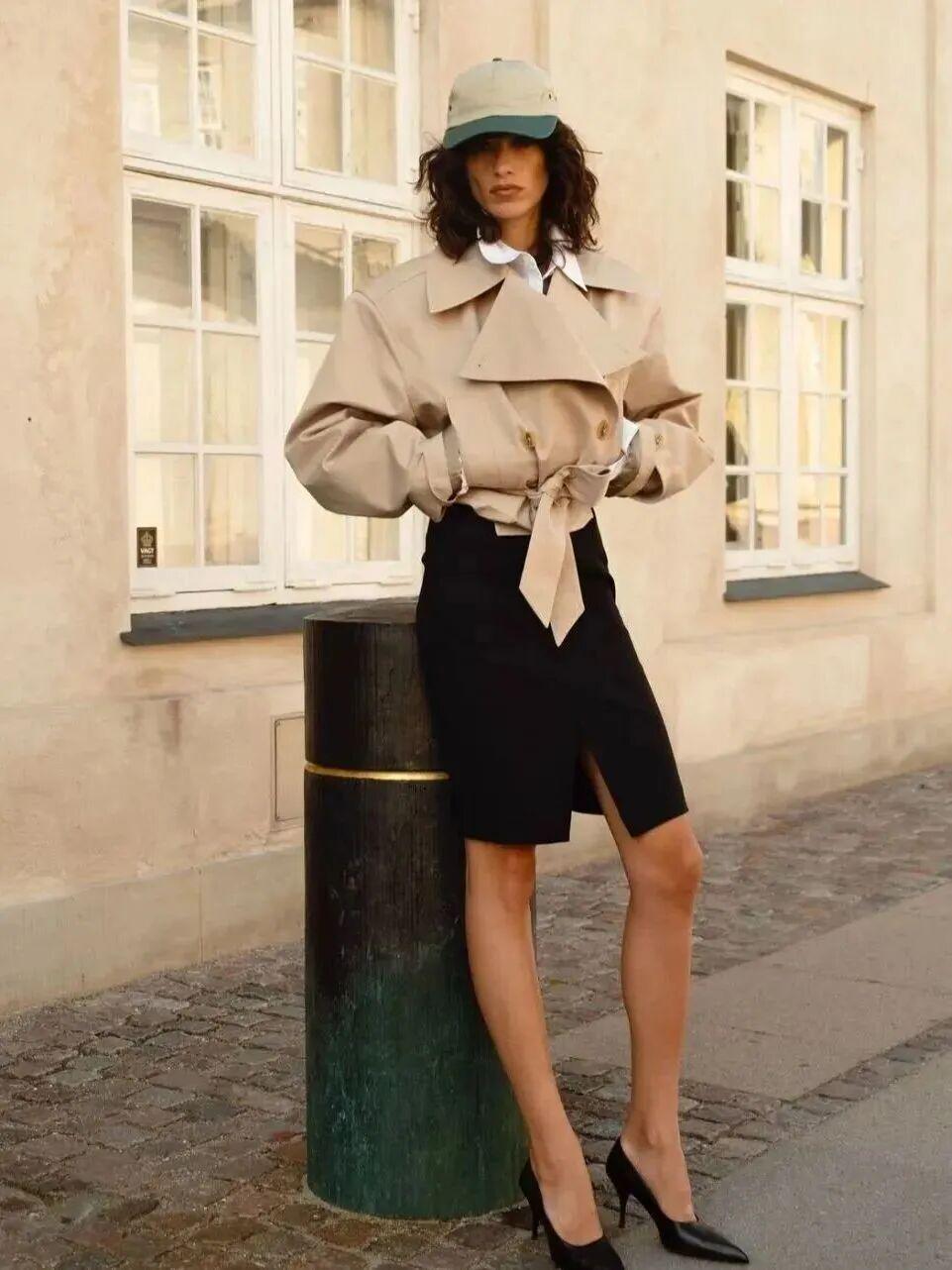 它既能在视觉上拉长比例,又让秋季穿搭更具层次感。无论搭配喇叭裤、百褶裙,还是下装失踪造型,都能在随意之间显出女性的张力与轻盈。一件短风衣,是“法式精致”与“美式利落”的平衡点。