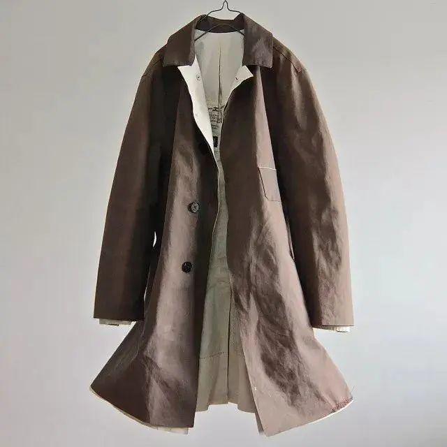传统风衣最具有代表性的还是上文提到的Burberry。经典的双排扣风衣外形诞生于二战时期,为了符合军队服装的要求,还在防水的华达呢面料上添加了肩章、D型环等设计,经典棕色双排扣样式总是散发着一股难以抵挡的老钱味儿。