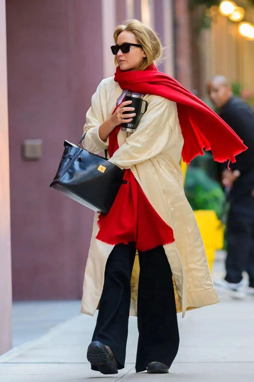 一些小配饰也是穿风衣时不容忽视的小心机。素色的穿搭加上亮色单品就能丰富细整体,成为全身造型的点睛之笔。